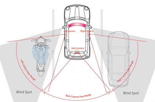 Микрокамеры расположены по обеим сторонам автомобиля и на задней части. В систему включена технология обработки изображений. Несколько изображений, получаемых с камер, соединяются вместе и отображаются на ветровом стекле. Специальная технология осветляет изображение, если это необходимо (например, ночью или при плохих условиях видимости), поэтому картинка получается всегда хорошая. С таким устройством пассажиры или груз, находящиеся в автомобиле, не будут препятствовать обзору водителя.