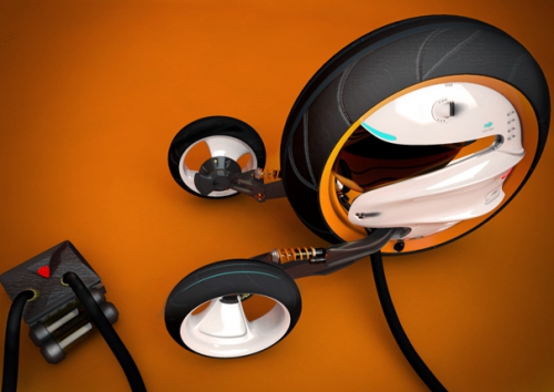 Промышленные дизайнеры по всему миру в последнее время начали искать альтернативные формы для транспортных средств. Сегодня мы хотим представить одну такую интересную на наш взгляд попытку - транспортное средство Phase 2.0. Этот агрегат представляет собой сборку одного большого колеса (в котором сидит водитель) и два поменьше. Эта машина адаптирует давление шин к местности, по которой едет. Например, когда транспортное средство едет по дюнам, болотам и т.п. давление в шинах опускается до приемлемого минимума, когда же выезжает на автобан - до максимума.